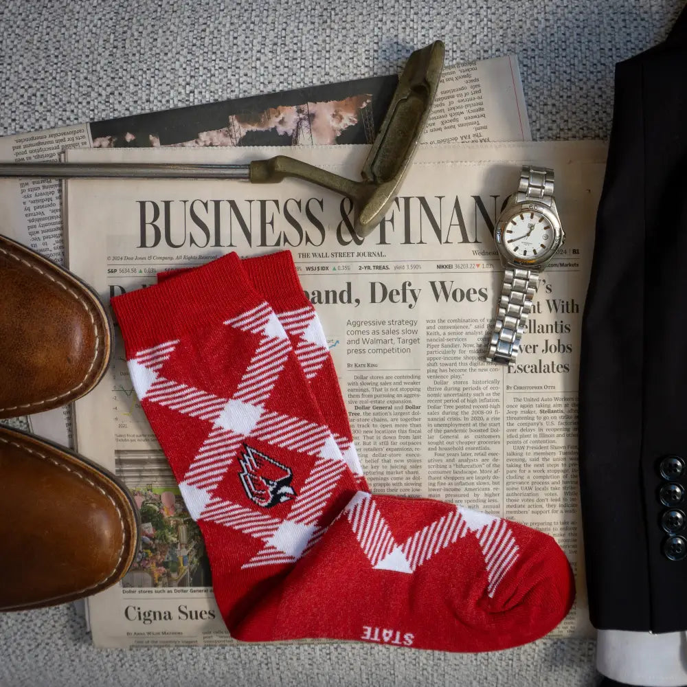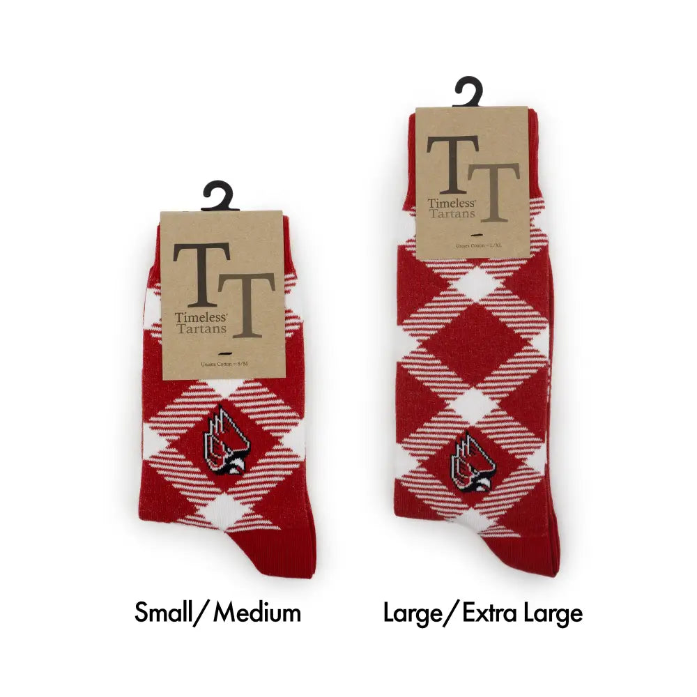 Would you like to showcase your school spirit and add an exciting pop to any outfit? Timeless Tartans socks are sure to become a staple in your wardrobe. Our patented algorithm combines Ball State University's founding year and campus coordinates with its official colors to create a unique, meaningful tartan pattern you’ll cherish for years to come.