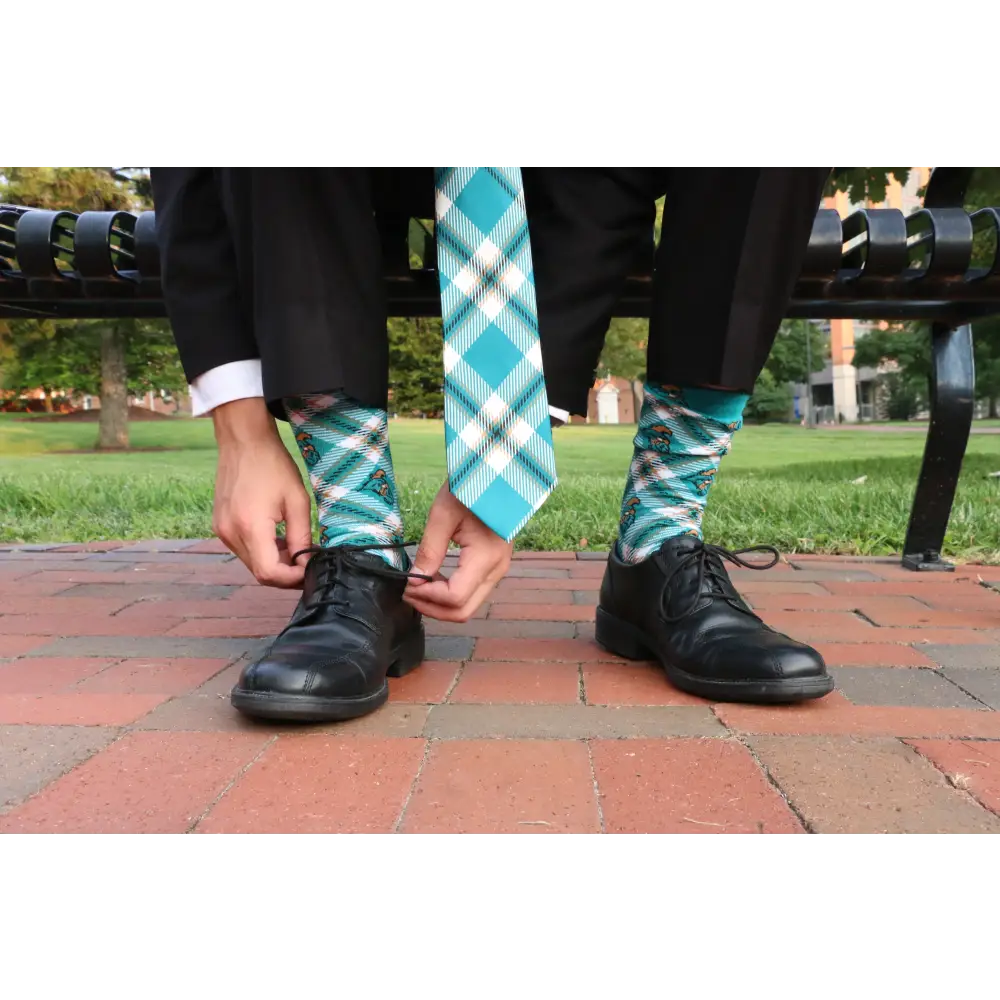 Would you like to show your school spirit in a more subtle and sophisticated way? From the boardroom to tailgating, you can show your school pride in any setting with a stylish tartan necktie. Our patented algorithm combines Coastal Carolina's founding year and campus coordinates with its official colors to create a unique, meaningful tartan pattern you’ll cherish for years to come.