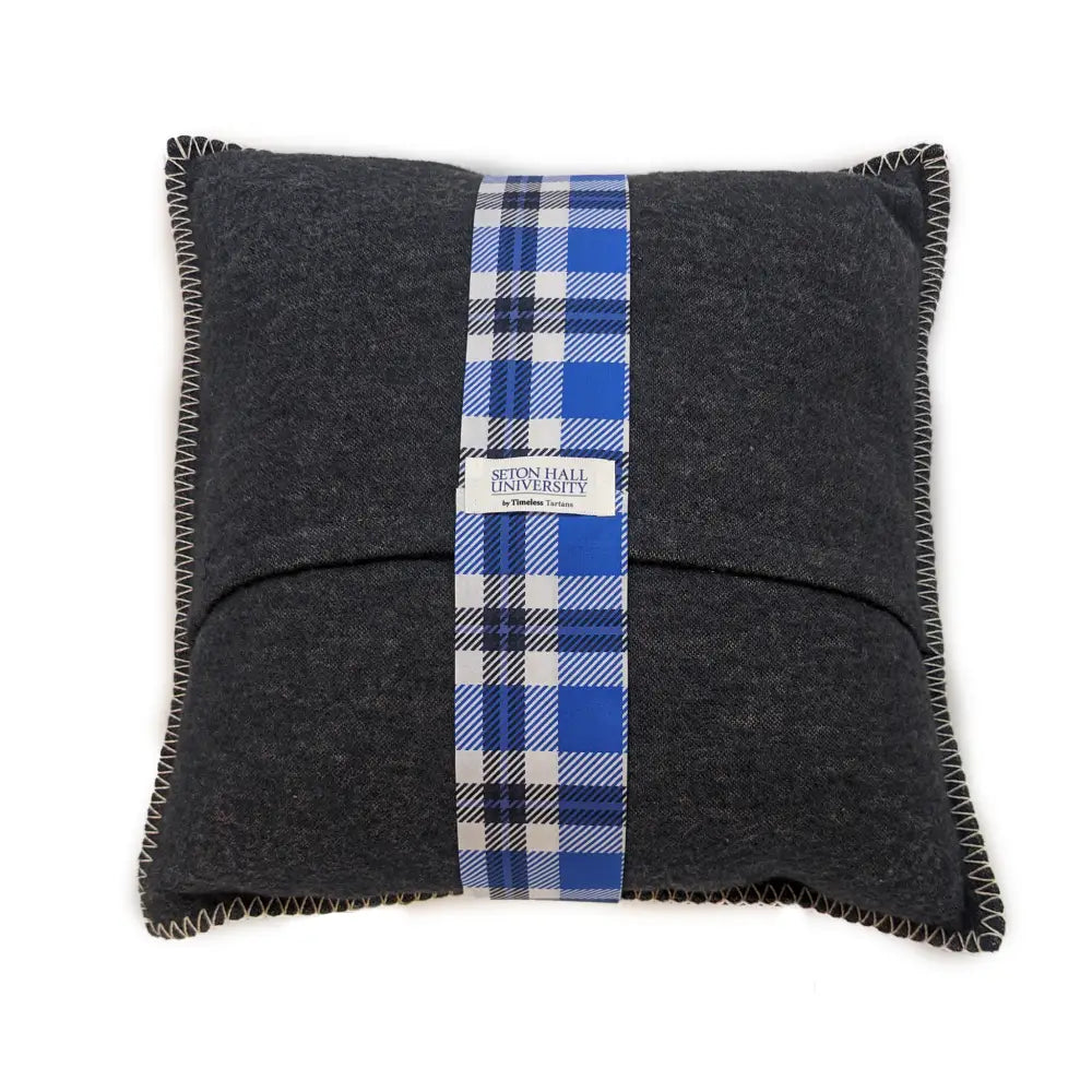 Looking to add a pop of collegiate color to your decor that complements the Applique Blanket? You can honor your alma mater in style with our high-quality flannel pillow covers made from environmentally-friendly recycled cotton. Each pillow cover is trimmed with distinctive border stitching and accented with a tartan band that wraps the pillow. Our patented algorithm combines Seton Hall's founding year and campus coordinates with its official colors to create a unique, meaningful tartan pattern you’ll cherish for years to come.