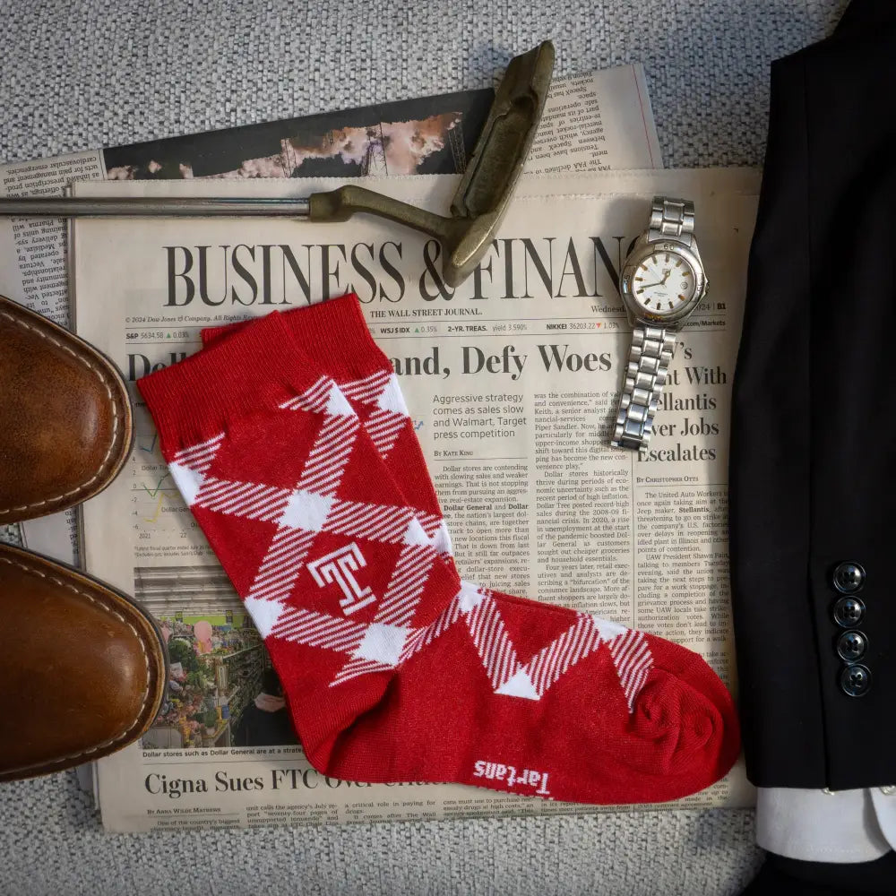 Would you like to showcase your school spirit and add an exciting pop to any outfit? Timeless Tartans socks are sure to become a staple in your wardrobe. Our patented algorithm combines Temple's founding year and campus coordinates with its official colors to create a unique, meaningful tartan pattern you’ll cherish for years to come.