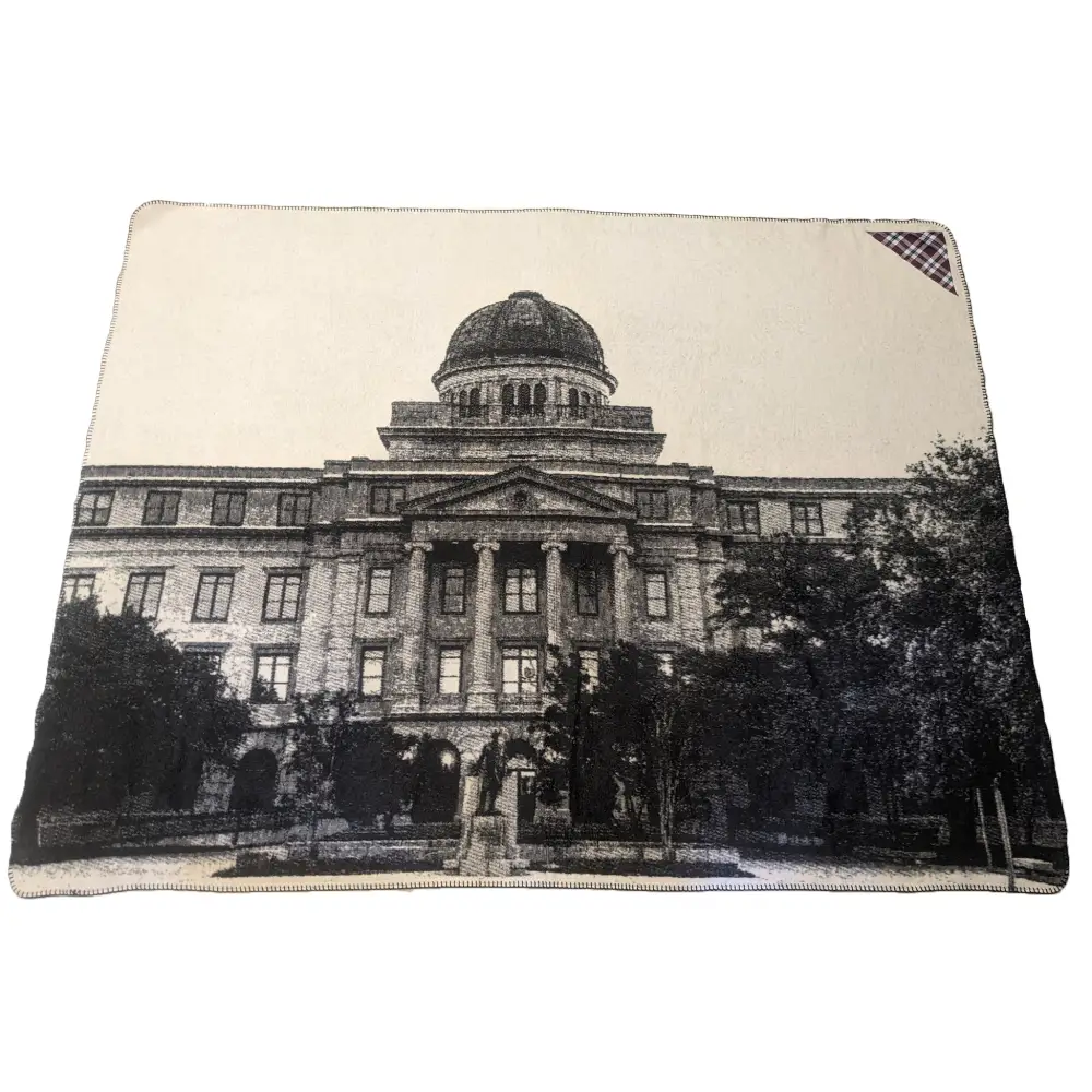 Looking to add a collegiate heirloom to your decor? You’ll love this custom jacquard velour blanket featuring TAMU’s iconic Academic Building, woven into yarn made from 85% environmentally-friendly pre-consumer recycled cotton. Our blankets are run through an 8-run combing process, giving them a luxurious softness.