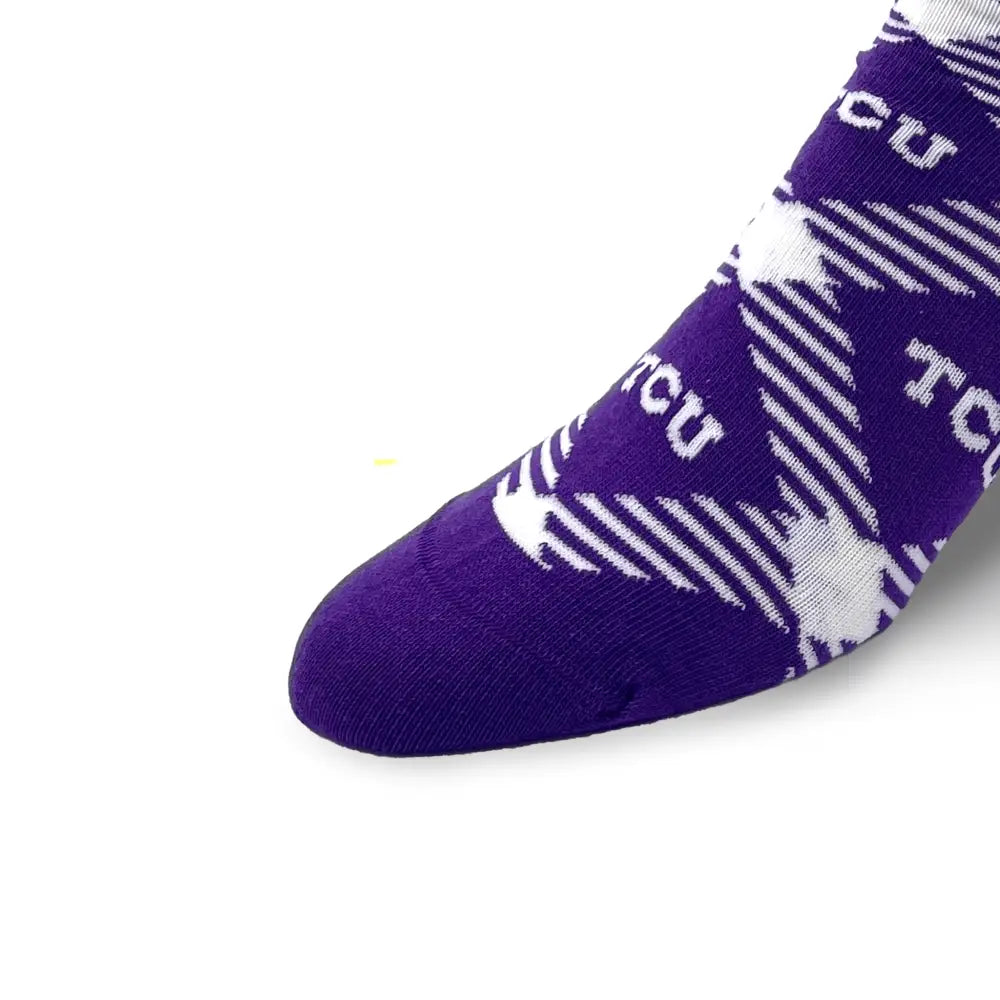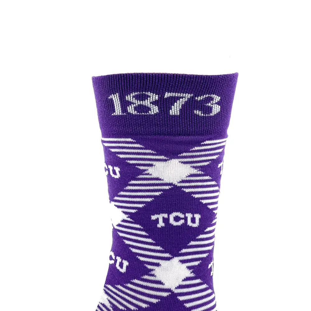 Showcase your school spirit and add a stylish touch to any outfit. These Timeless Tartans socks are destined to become a staple of your wardrobe. This tartan pattern was developed by TCU Interior Design and Fashion Merchandising senior Aimee Hibler in the spring of 2018 and officially adopted after a vote by TCU students, faculty, staff and alumni.