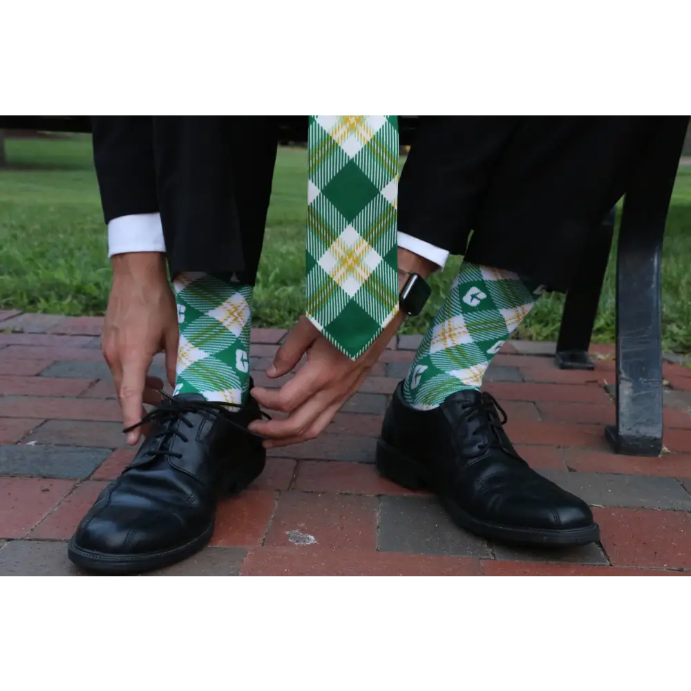 Showcase your school spirit and add a stylish touch to any outfit. These Timeless Tartans socks are destined to become a staple of your wardrobe. Our patented algorithm combines Charlotte's founding year and campus coordinates with UNCC's official colors to create a unique, meaningful pattern that will stand the test of time.