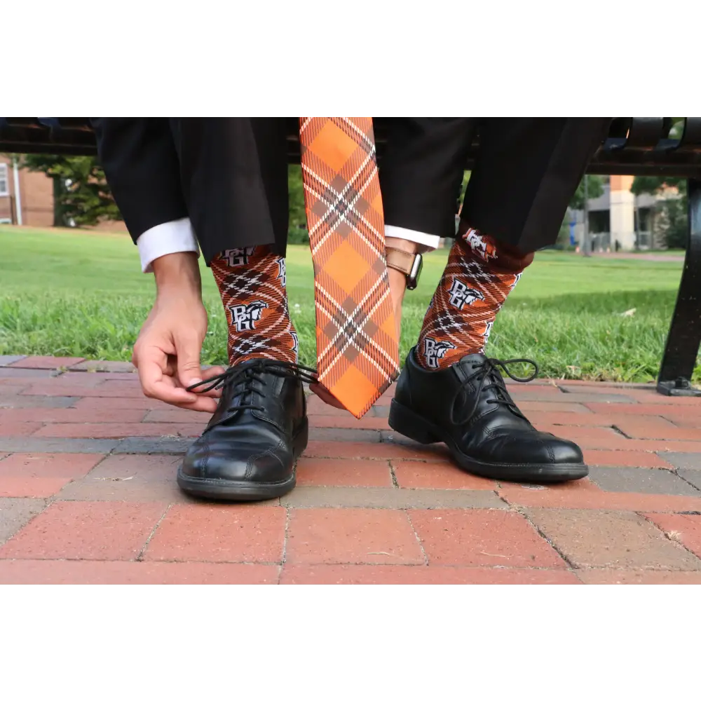 Add the perfect final touch to your look with a stylish tartan necktie. From the boardroom to tailgating, you can show your school pride in any setting. Our patented algorithm combines Bowling Green's founding year and campus coordinates with BGSU's official colors to create a unique, meaningful pattern that will stand the test of time.